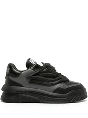 Versace merges a futuristic aesthetic with its house hallmarks in the design of these slip-on Odissea sneakers. Rendered in black, they’re defined by sharp contoured lines and a three-dimensional Medusa plaque at the front.